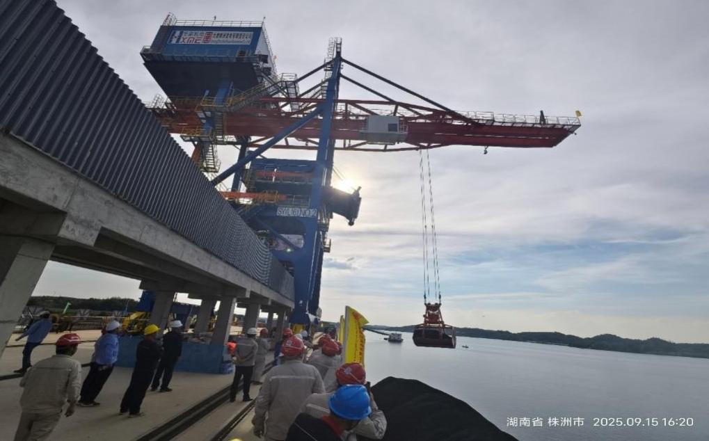 湘江之畔,華新機(jī)電大唐華銀株洲項(xiàng)目抓斗橋式卸船機(jī)近日完成首船接卸。這標(biāo)志著湖南省“十四五”重大能源工程的關(guān)鍵配套項(xiàng)目——大唐華銀株洲退城進(jìn)郊2×100萬千瓦擴(kuò)能升級(jí)改造項(xiàng)目燃料供應(yīng)保障的關(guān)鍵環(huán)節(jié)已經(jīng)打通,項(xiàng)目進(jìn)度取得重大進(jìn)展,為電廠后續(xù)投產(chǎn)與高效運(yùn)營奠定了堅(jiān)實(shí)的基石。