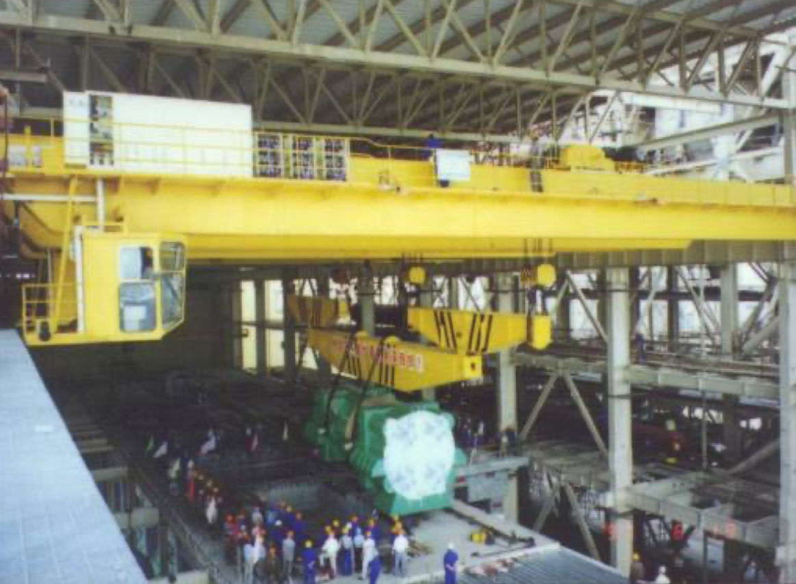 公司設計制造的所有橋機及門機的起升小車系消化吸收國外先進技術,結(jié)合我國當時的配套水平,綜合研究院多年的技術研制經(jīng)驗,遵照GB/T3811-2008《起重機設計規(guī)范》、GB/T14405-2011《通用橋式起重機》等標準,同時參照國外有關起重機標準及歐洲搬運協(xié)會主流橋式起重機機型研制而成,節(jié)能減排,經(jīng)濟環(huán)保,特別適合地下廠房、新型工廠及大噸位貴重物件的吊裝、搬運就位工作。公司首臺臺橋機為1990年研發(fā)、1992年投入生產(chǎn)的寧波北侖電廠80/20t橋式起重機,公司首臺臺門機為1994年向富春江發(fā)電廠提供的2×20t尾水門機。近三十年的發(fā)展,已向國內(nèi)外眾多優(yōu)質(zhì)客戶提供千余臺橋機和門機設備,是目前業(yè)內(nèi)最先進、最成熟的低凈空小車結(jié)構(gòu)。目前制造過的單小車橋機最大額定起重量為800t,雙小車橋機最大額定起重量為500t+500t,具備1500噸橋機的設計制造能力;制造過的門式起重機最大額定起重量為900t的造船龍門吊。