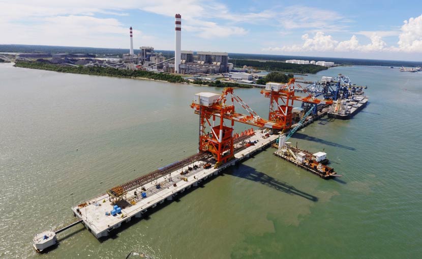 馬來西亞Tanjung Bin電廠,位于西馬南部、新加坡西北面,與新加坡隔柔佛海峽對望。該電廠是馬來西亞Malakoff電力集團(tuán)旗下的電廠之一。本次華新機(jī)電的供貨范圍是2臺2400tph抓斗卸船機(jī),也是目前華新公司生產(chǎn)最大工作量的抓斗卸船機(jī)。