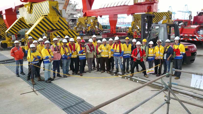 華新機(jī)電產(chǎn)品替代德國制造扎根馬來西亞市場,充分展示了公司產(chǎn)品的實(shí)力和市場優(yōu)勢。目前,公司三臺卸船機(jī)雄駐柔佛海峽的咽喉口,為中國產(chǎn)品“一帶一路”提供智能制造、揚(yáng)名海外市場貢獻(xiàn)了華新機(jī)電人的智慧。2400tph抓斗卸船機(jī)項(xiàng)目執(zhí)行團(tuán)隊(duì)所有成員相互積極配合、精誠團(tuán)結(jié)、辛勤工作,與業(yè)主和總承包的密切配合以及高質(zhì)量的服務(wù)獲得了業(yè)主與總包單位的肯定與鼓勵,實(shí)現(xiàn)了公司與馬來客戶良好合作的傳承。