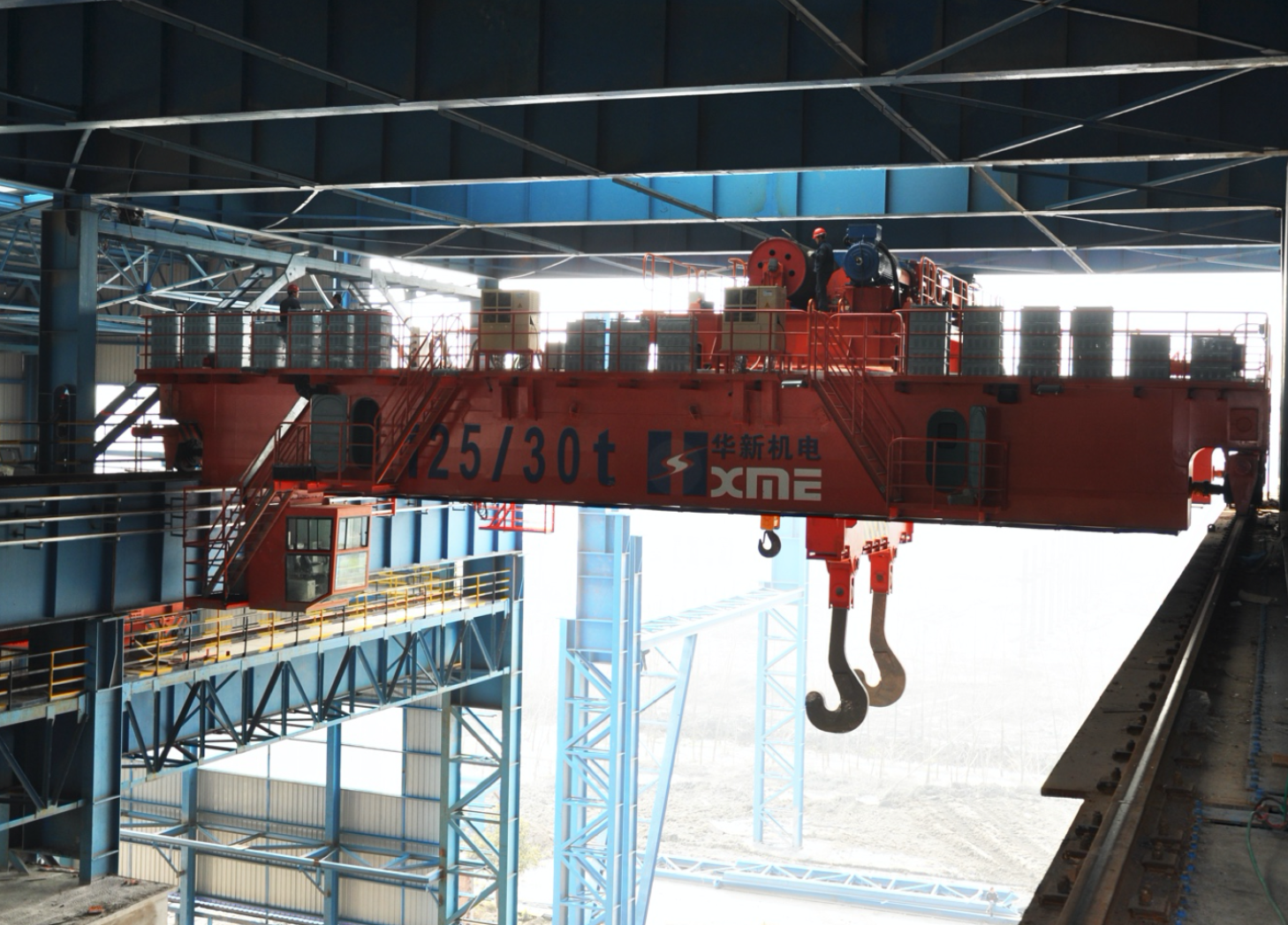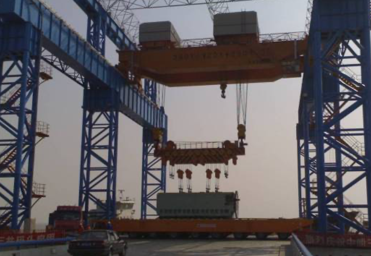 The trolley traveling system of all the bridge cranes and gantry cranes designed and manufactured by HXME are developed based on digesting and absorbing foreign advanced technology, combine with years of technical research and development experience of the relevant Institutes, and in compliance with GB/T3811-2008 "Crane Design Specification" GB/T14405-2011 "Universal Bridge Crane" and other standards, and by referring to relevant foreign crane standards and the mainstream models of bridge crane prevailed by the European Handling Association. It is energy-saving and emission reduction, economical and environment-friendly, especially suitable for underground factories, new factories and hoisting, transporting, moving large tonnage valuable objects in place. The first bridge crane designed by HXME team was the 80/20t bridge crane in Ningbo Beilun Power Plant, which was developed in year 1990 and put into operation in year 1992. The first gantry crane was 2x20t gantry crane supplied to Fuchunjiang Power Plant in year 1994. In the past 30 years of development, it has provided more than 1,000 units of bridge cranes and gantry cranes to many big companies at home and abroad. It is the most advanced and most mature low-clearance trolley structure in the industry in China. The single-trolley bridge crane ever manufactured by HXME is with maximum rated lifting weight of 800t, and the double-trolley bridge crane is with maximum rated lifting weight of 500t+500t. HXME has the design and manufacturing capacity of 1500t bridge crane; The gantry crane ever manufactured by HXME is with maximum rated lifting weight of 900t shipbuilding gantry crane.