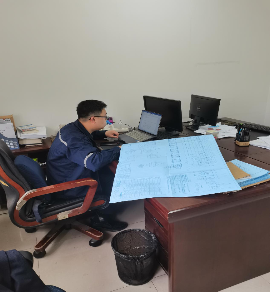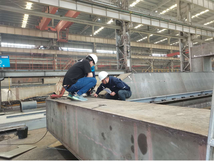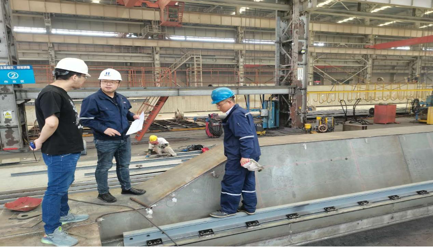 2021年,莊巍同志發(fā)現(xiàn)原先運用在陸豐900t固定式門座機上的工藝還可以改進,于是在反復(fù)地試驗和不懈地努力下,將改進工藝運用到三澳650t項目中,解決了廠內(nèi)吊裝設(shè)備能力不足且避免請大型起吊設(shè)備花費大額費用的問題。同年公司接單的德龍5037門座機項目在海重公司制作,由于該類型也是海重公司第一次制作,門架門腿結(jié)構(gòu)特殊,正常制作無法滿足圖紙要求,經(jīng)過一系列制作樣品驗證,且在圖紙視圖存在缺陷和無檢驗基準(zhǔn)情況下,他卻始終堅信“沒有完不成的項目”,在經(jīng)過不斷的實踐后,發(fā)現(xiàn)可以通過放樣設(shè)計基準(zhǔn)靠板可以解決問題,最終讓制作班組快速順利地完成了制作任務(wù)。