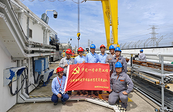 ▲夏樂(右二)、尹飛虎(右三)、段郎昊(右一) 與福清核電項(xiàng)目維修持處黨支部人員合影