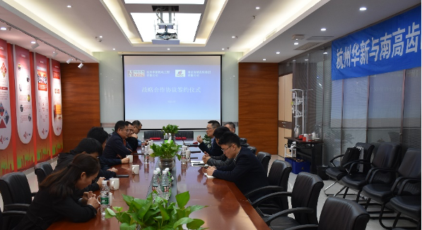 王吉如總經(jīng)理代表華新機(jī)電對南高齒多年來的工作支持表示感謝,并簡要介紹了華新機(jī)電近幾年在產(chǎn)品轉(zhuǎn)型升級、經(jīng)營模式、生產(chǎn)制造、科技創(chuàng)新等領(lǐng)域的發(fā)展情況。因華新機(jī)電在港口機(jī)械制造特別是在卸船機(jī)產(chǎn)品上占有一定的市場份額,具有較好的品牌影響力、產(chǎn)品產(chǎn)銷量大等特點(diǎn),南高齒在齒輪行業(yè)也處于領(lǐng)先地位,期待此次華新機(jī)電與南高齒簽訂戰(zhàn)略合作協(xié)議,未來更全面地深化合作,有效發(fā)揮雙方的綜合實力、競爭優(yōu)勢,不斷拓寬合作領(lǐng)域,共同推進(jìn)雙方在起重領(lǐng)域的跨越式發(fā)展。