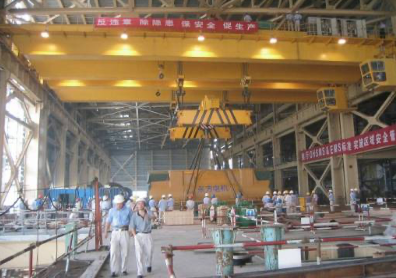 公司設計制造的所有橋機及門機的起升小車系消化吸收國外先進技術,結(jié)合我國當時的配套水平,綜合研究院多年的技術研制經(jīng)驗,遵照GB/T3811-2008《起重機設計規(guī)范》、GB/T14405-2011《通用橋式起重機》等標準,同時參照國外有關起重機標準及歐洲搬運協(xié)會主流橋式起重機機型研制而成,節(jié)能減排,經(jīng)濟環(huán)保,特別適合地下廠房、新型工廠及大噸位貴重物件的吊裝、搬運就位工作。公司首臺臺橋機為1990年研發(fā)、1992年投入生產(chǎn)的寧波北侖電廠80/20t橋式起重機,公司首臺臺門機為1994年向富春江發(fā)電廠提供的2×20t尾水門機。近三十年的發(fā)展,已向國內(nèi)外眾多優(yōu)質(zhì)客戶提供千余臺橋機和門機設備,是目前業(yè)內(nèi)最先進、最成熟的低凈空小車結(jié)構(gòu)。目前制造過的單小車橋機最大額定起重量為800t,雙小車橋機最大額定起重量為500t+500t,具備1500噸橋機的設計制造能力;制造過的門式起重機最大額定起重量為900t的造船龍門吊。